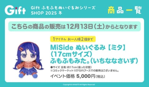 「コミックマーケット107」のGiftブースにてご案内予定の商品も、本イベントで販売します。これらの商品は2025年12月30日(火)から順次販売を開始する予定です。