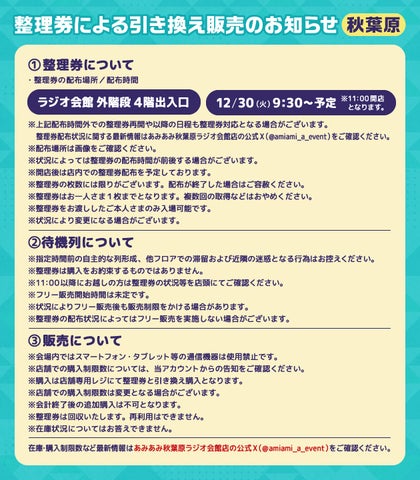 あみあみ秋葉原ラジオ会館店の公式Xでは、イベントの最新情報や整理券配布の詳細を随時発信しています。