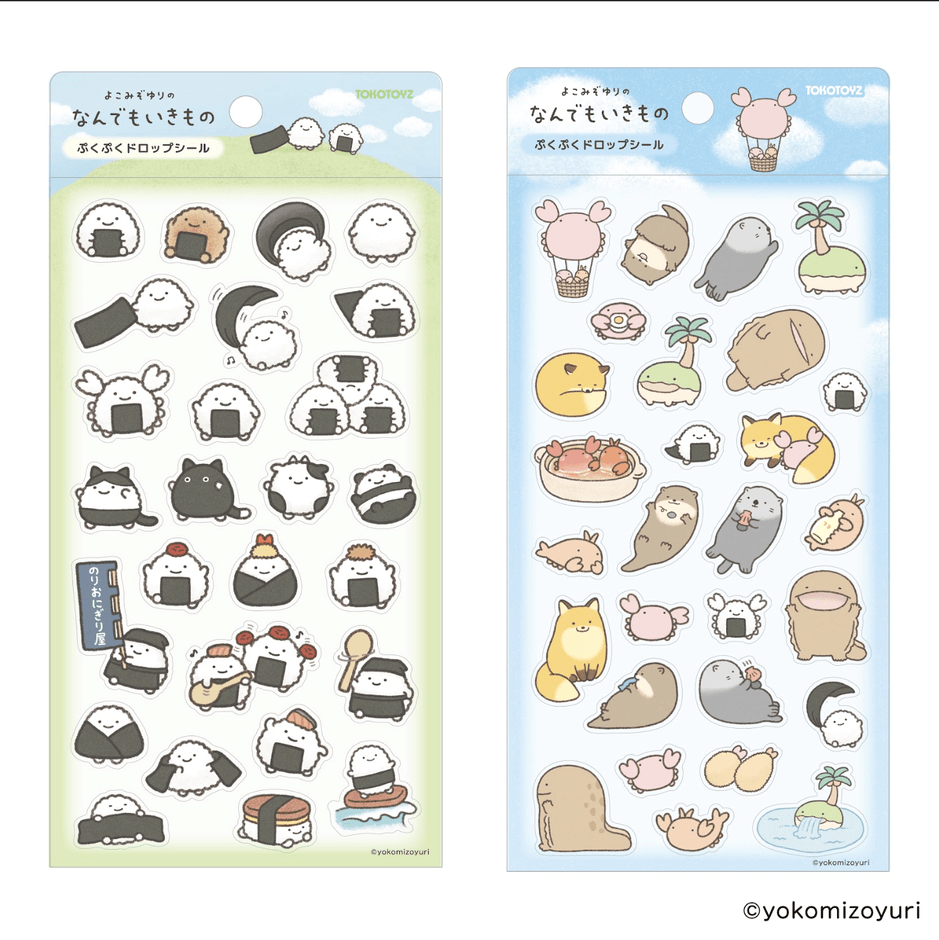 今人気のぷくぷくシールに、『なんでもいきもの』シリーズが加わります。バリエーションは「のりおにぎり」と「なんでもいきもの」の全2種類です。
