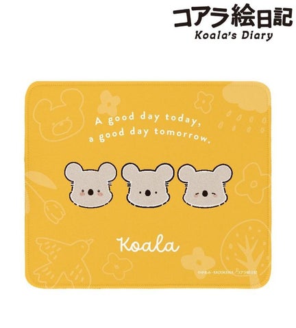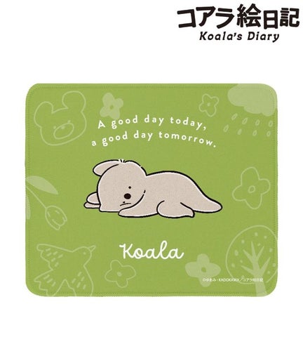 コアラさんのイラストとキャッチコピー「今日もいい日、明日もいい日。」をデザインしたマウスパッドです。裏面にはゴム加工が施されており、滑り止めが効くため作業に集中できます。デスクに敷いたり、お部屋に飾ったりして、キャラクターとの日常を楽しめます。