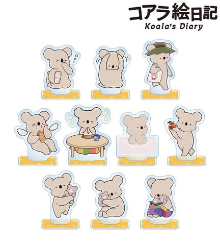コアラさんとくまちゃんのイラスト、キービジュアルを使用したアクリルスタンドです。お部屋やデスクまわりに飾ることで、キャラクターとの日常を演出します。