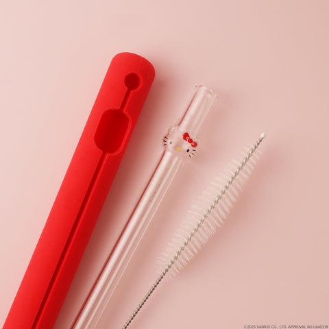 「ハローキティ」ガラス製マイストローセット(リボン赤)は、2025年12月15日より再販売を開始します。手作りのガラス製ストローで、シリコンケースと洗浄ブラシがセットになっています。