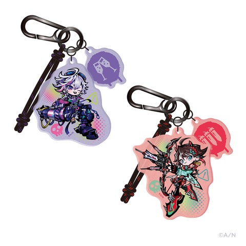 全2種のキーチャームは、ビジュアルパーツがW59mm×H70mm以内、モチーフパーツがW29mm×H39mm以内です(種類によってサイズが異なります)。素材はアクリル、ポリエステル、合金、鉄。価格は各2,200円(税込)です。お1人様1会計につき、各5点まで購入可能です。