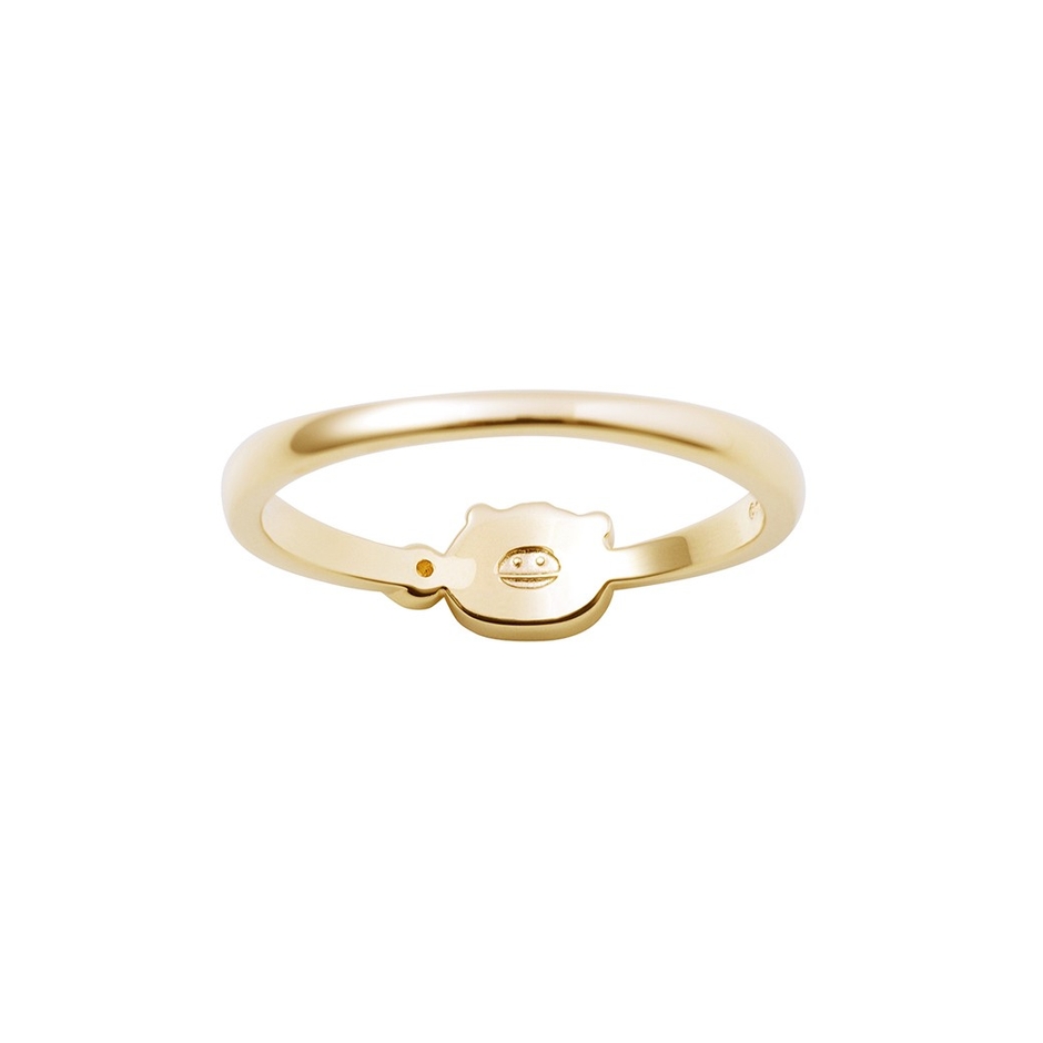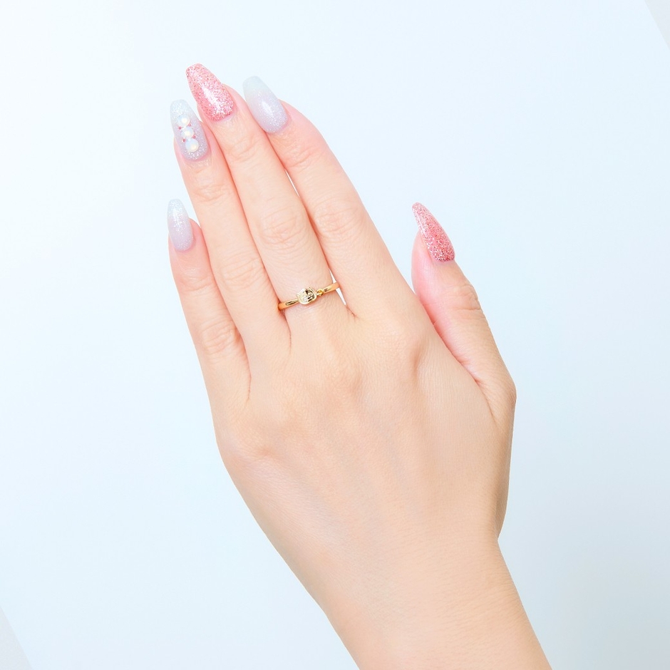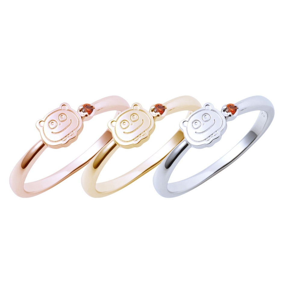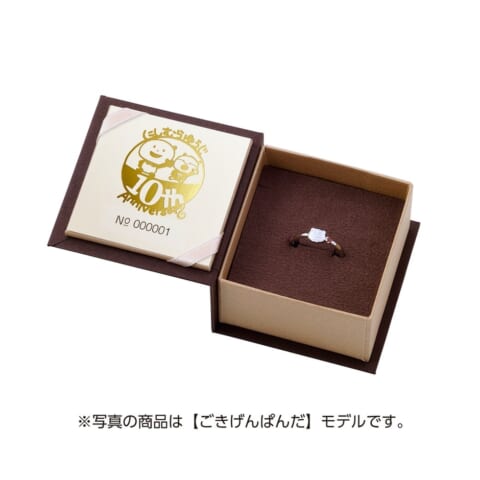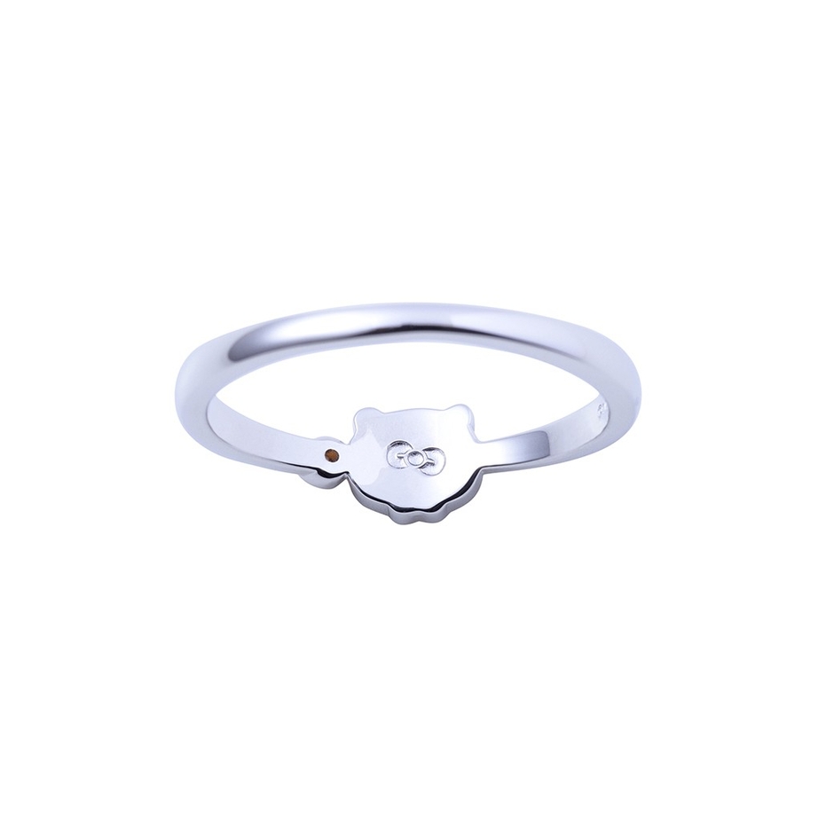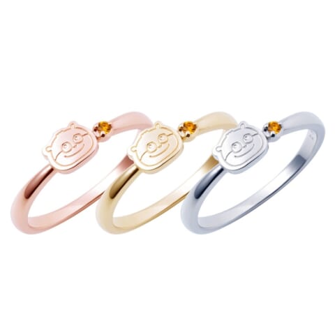 にんまり笑顔の「ごきげんぱんだ」とワンポイントストーンが指先に輝きを添えます。リングの内側には、ごきげんぱんだの蝶ネクタイの刻印を施しました。