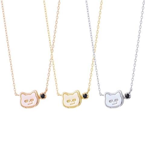 たくらみ顔をした「わるめのねこ」とワンポイントストーンが胸元で愛らしくきらめきます。
