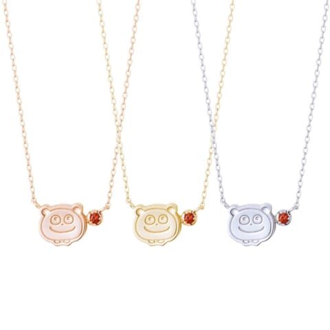 にんまり笑顔の「ごきげんぱんだ」とワンポイントストーンが胸元で愛らしくきらめきます。