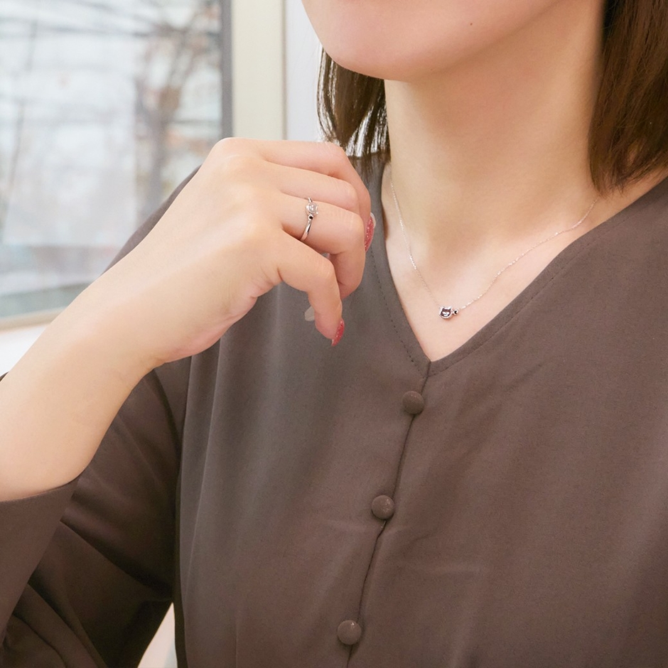 ちょっぴり甘え上手な「こねずみ」とワンポイントストーンが胸元で愛らしくきらめきます。