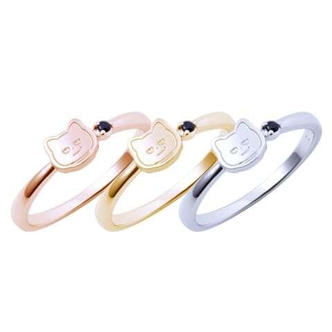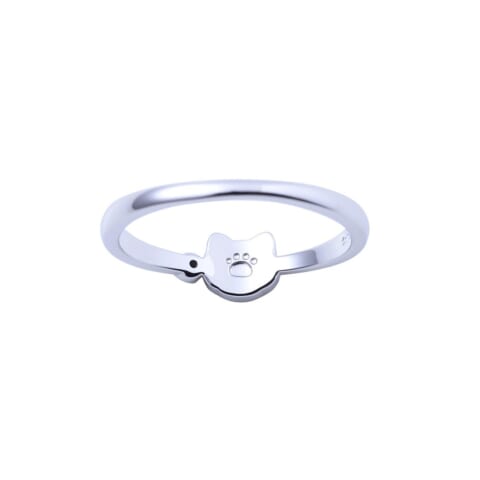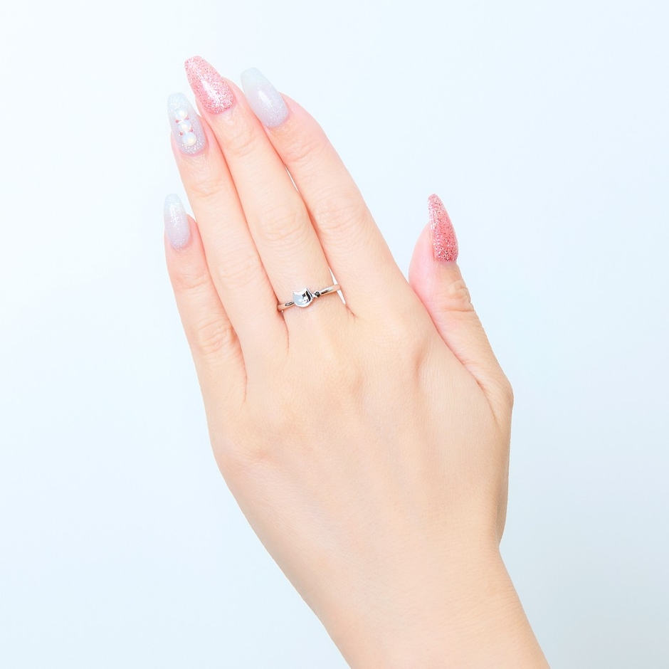 たくらみ顔をした「わるめのねこ」とワンポイントストーンが指先に輝きを添えます。リングの内側には、肉球の刻印を施しました。