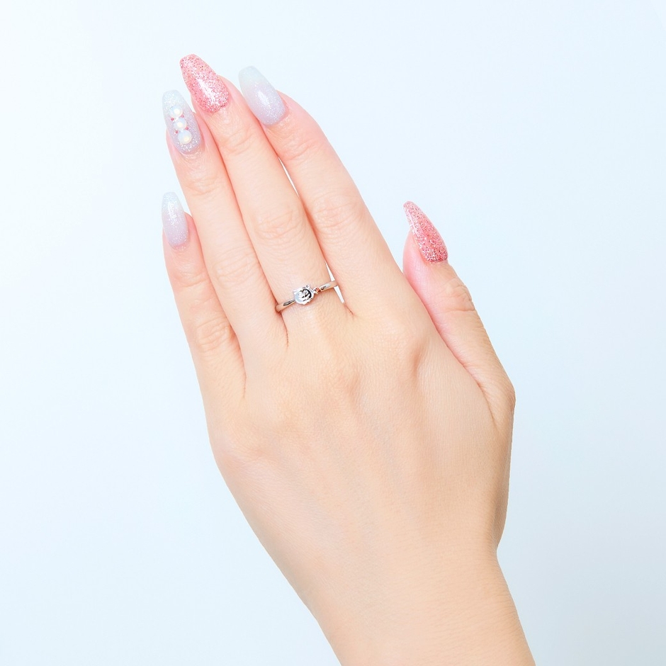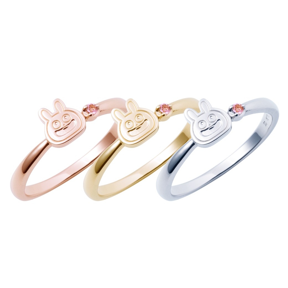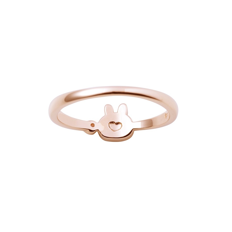 笑顔いっぱいの「ラブラビット」とワンポイントストーンが指先に輝きを添えます。リングの内側には、ハートマークの刻印を施しました。