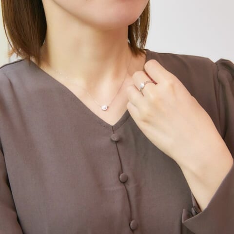 リングとネックレスともに、K10ゴールドをホワイト、ピンク、イエローの3色から選択可能です。さらに、13種類の天然石の中からお好みのストーンを選び、組み合わせることで、自分だけのオリジナルジュエリーを完成させます。