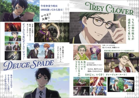 「エピソード オブ ハーツラビュル」で活躍するボイスキャスト8名の撮り下ろし写真とともに、大ボリュームのインタビューが掲載されています。 インタビューでは、アニメーション化への想い、自身が演じるキャラクターについて、『ツイステ』という作品が持つ魅力など、多岐にわたる質問への回答を掲載しています。