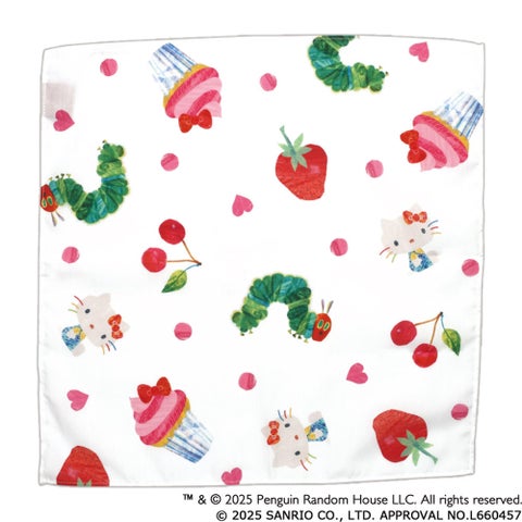 世界的名作「はらぺこあおむし」と「ハローキティ」のコラボレーションカプセルトイに第2弾が登場しました。第一弾での好評を受け、今回は新しいデザインを使用しています。スイーツをモチーフにした甘く愛らしいデザインで、いちごやさくらんぼ、「ハローキティ」のリボンがのったカップケーキを「はらぺこあおむし」が今にも食べるような姿が描かれています。エリック・カールの鮮やかな色彩で彩られた「ハローキティ」の姿もコラボレーションならではの魅力です。