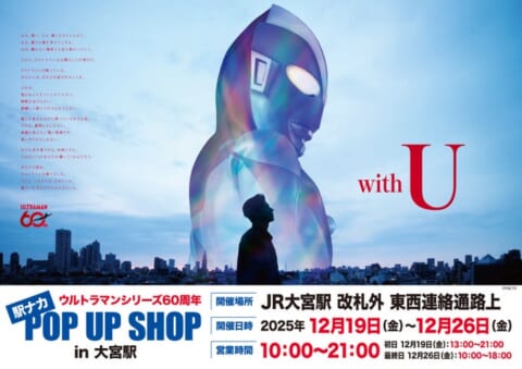 2025年12月19日から26日まで、JR大宮駅で「ウルトラマンシリーズ60周年 駅ナカ POPUP SHOP in 大宮駅」を開催します。ウルトラマンシリーズ60周年を記念した本イベントでは、限定品を含む多数のウルトラマングッズを販売します。