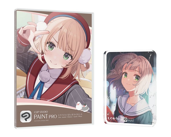 CLIP STUDIO PAINTの公式アンバサダーであるイラストレーターのしぐれうい先生との第2弾コラボパッケージ「CLIP STUDIO PAINT PRO 1デバイスプラン12ヶ月版 特製アクリルブロック付き コラボパッケージ」を販売します。