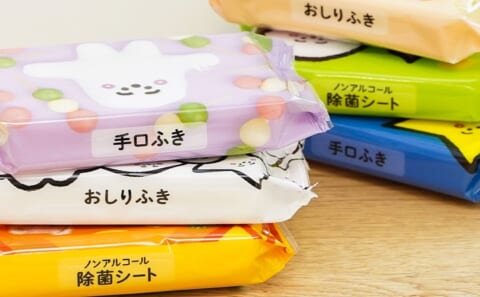 『シナぷしゅ』デザインのウェットシートは、お子様との毎日をもっと楽しく、もっと快適に過ごせるよう開発されました。各アイテムのこだわりをご紹介します。