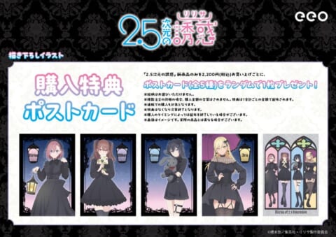 TVアニメ「2.5次元の誘惑」の新作グッズが「ジャンプフェスタ2026」での会場販売に先駆けて、本日2025年12月17日(水)より「eeo Store online」にて先行通販を開始しました。今回の新作グッズは「ゴシック」をテーマにした描き下ろしイラストを使用しています。