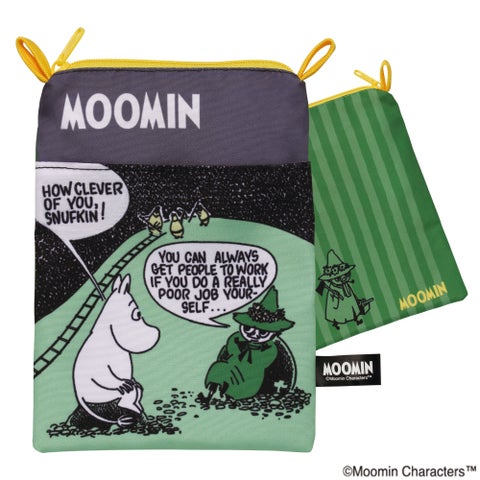 ポーチのデザインには、ムーミンの生みの親であるトーベ・ヤンソン氏と弟のラルス・ヤンソン氏が描いたコミックスのアートを使用しています。ムーミン谷の仲間たちの生き生きとした姿や、吹き出しのセリフにも注目が集まります。