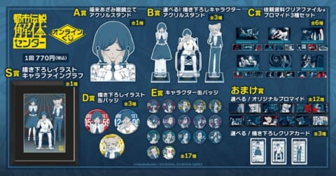 今回のオンラインくじでは、『都市伝説解体センター』の人気キャラクター「福来あざみ」「廻屋渉」「ジャスミン」の描き下ろしイラストを使用したアイテムを含む、多様な賞品が用意されています。