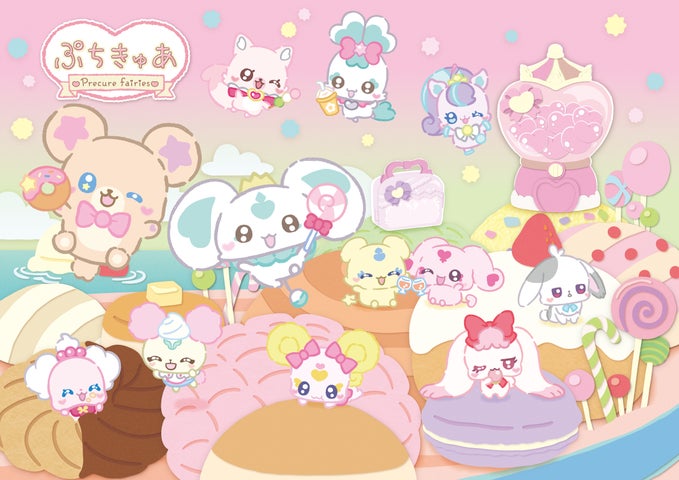 「ぷちきゅあ」は、『プリキュア』シリーズの歴代のちいさななかまたちが主人公の作品です。なんでもかなう「おかしなパラダイス」で、みんながお菓子を食べたり乗り物で遊んだりして楽しく過ごす様子が描かれています。プリキュアのなかまたちが「おやすみモード」でほっと一息つく、「きゅあ~♡」な姿が特徴で、見る人を癒やします。
