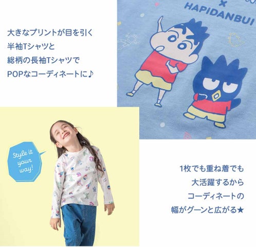 子供服ブランド「SLAP SLIP」は、「クレヨンしんちゃん」とサンリオのキャラクターユニット『はぴだんぶい』とのコラボレーションアイテムを、本日2025年12月19日(金)より全国店舗およびBEBE公式オンラインストアにて順次発売します。