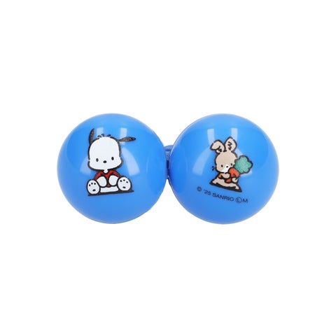 まんまるで大きめの、カラフルなボンボンヘアゴムです。二つに分かれたボンボンのそれぞれにサンリオキャラクターをあしらっています。