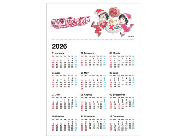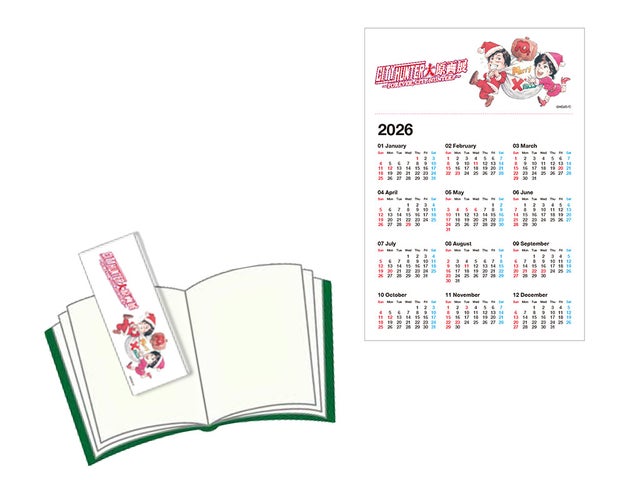 2025年12月24日(水)と25日(木)の2日間限定で、ご入場のお客様へ特別なクリスマスプレゼントを用意しました。サンタクロースに扮した冴羽獠と槇村香の原画を使用した、「しおりにもなるカレンダー2026」(B6サイズ)を、各日ご入場者様先着1,000名様にプレゼントします。ファン必携の記念グッズとなるため、ぜひこの機会に来場ください。