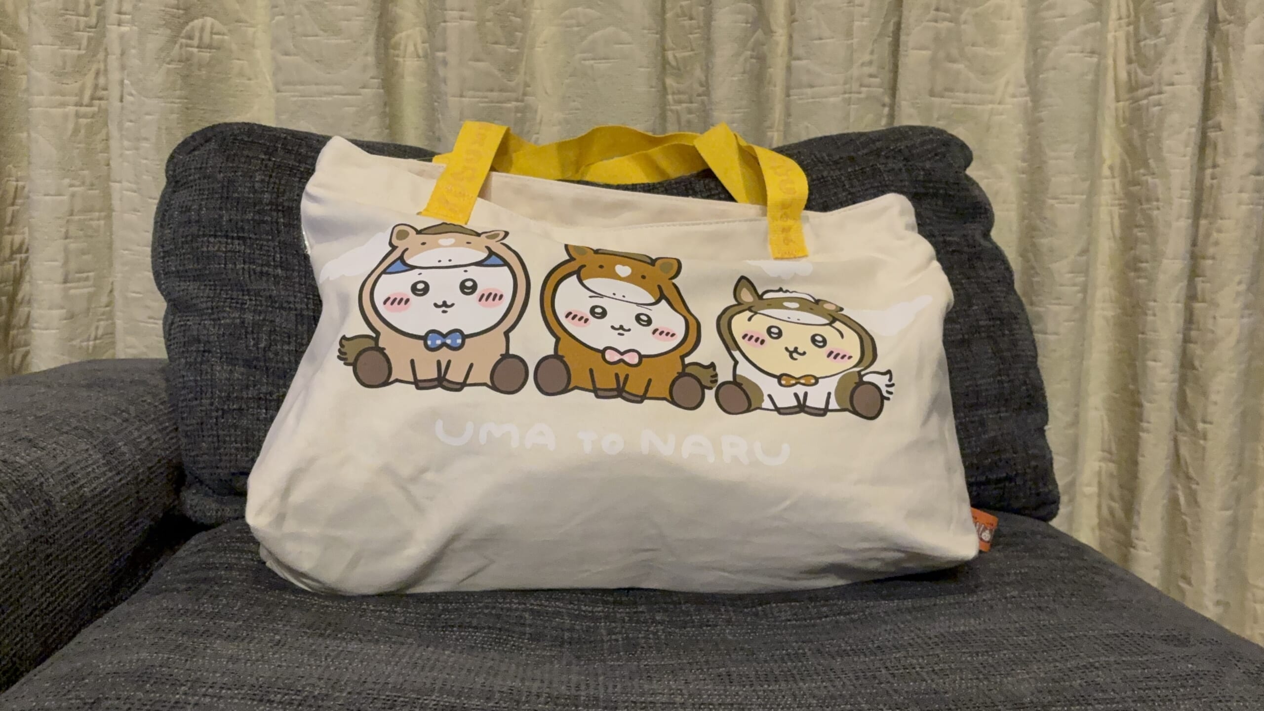 下部の「UMA TO NARU」ロゴも程よく主張しており、写真映えも抜群。年始のイベントや遠征で持ちたくなる記念バッグ感があります。
