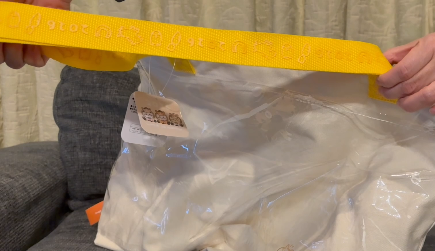 干支ぬい3体をまとめて入れても余裕のあるサイズ感で、「イベントで使える」と確信しました。ポケット右下にはゴールドのアクセント(立ち姿シルエット)が入っており、可愛さと大人っぽさを両立しています。
