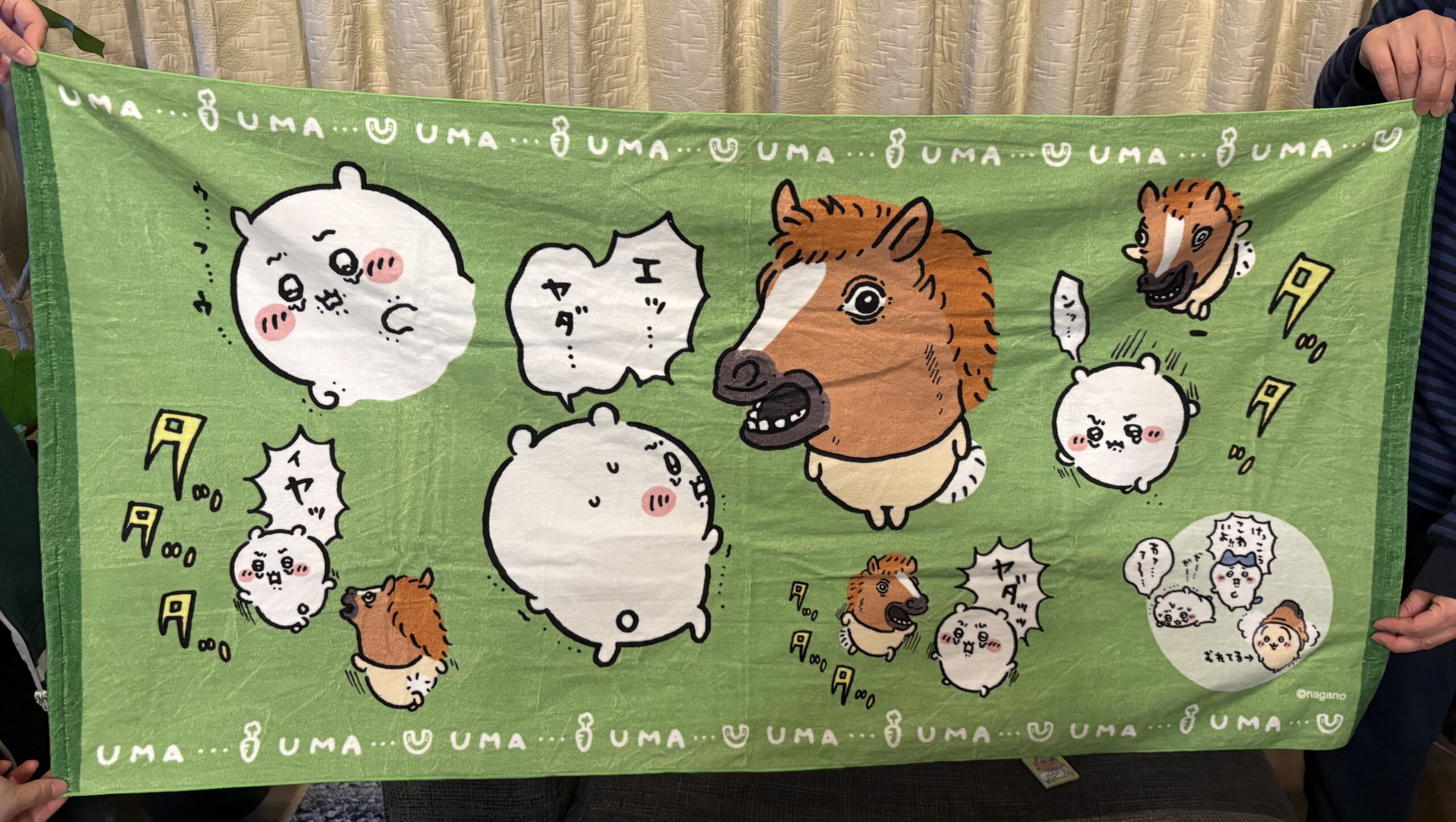 個人的にいちばん笑ったのがこのバスタオル。シュールな表情の”馬”と、それに振り回される(?)ちいかわたちの構図が強烈で、広げるたびにニヤッとします。