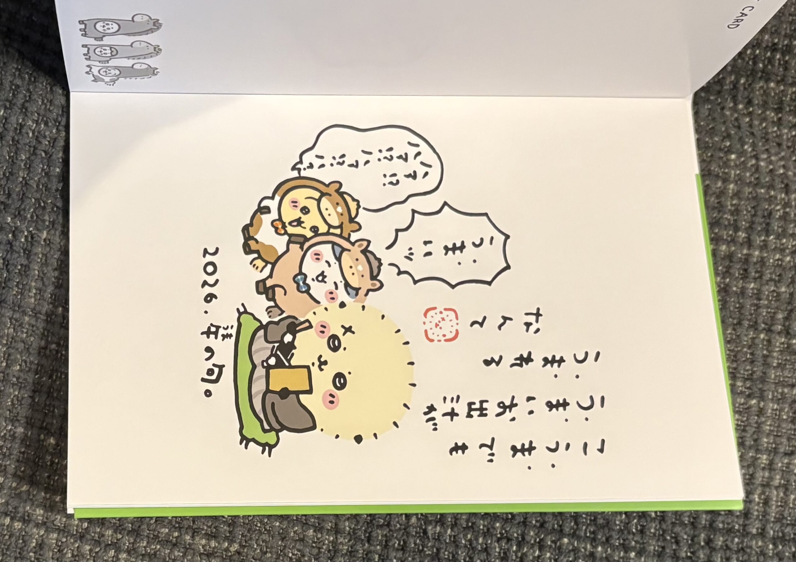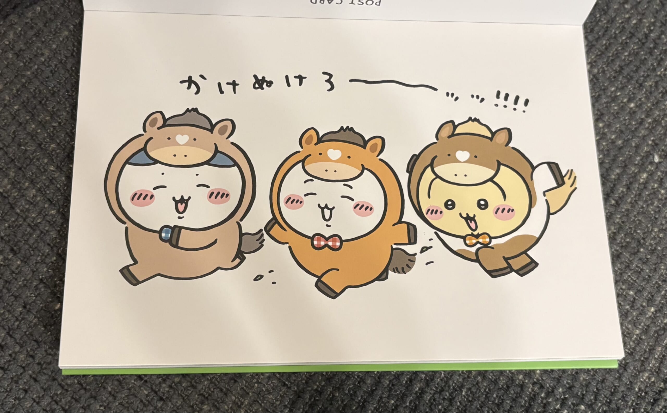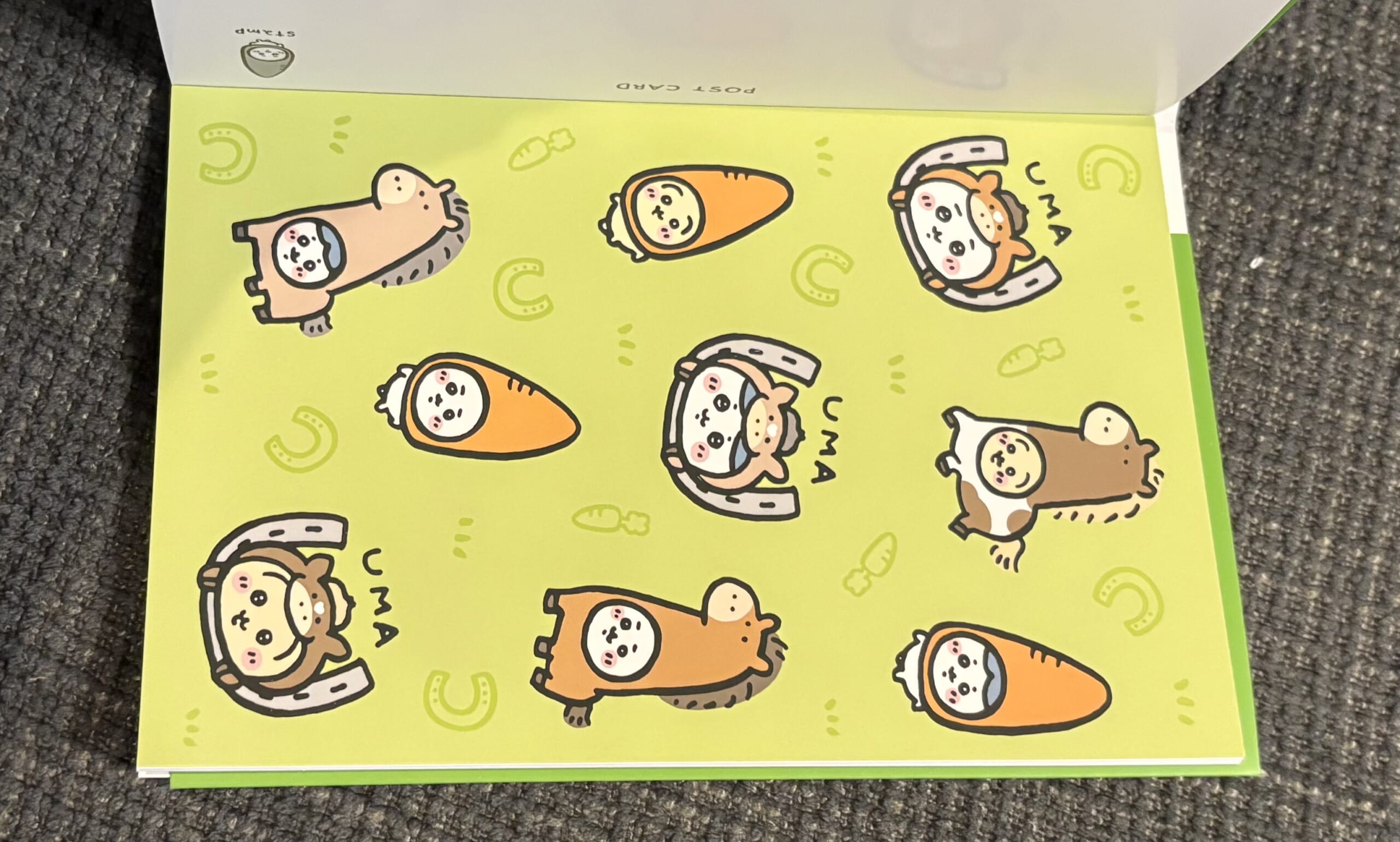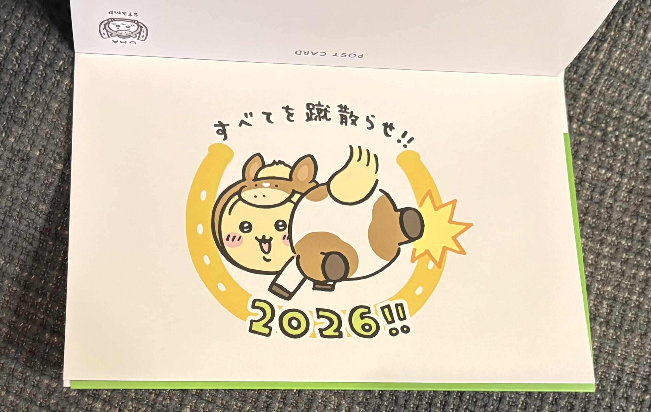「2026!!」が目立つグリーンの表紙で、開封時点から新年感が強いアイテム。ポストカードが1枚ずつバラで入っているのではなく、ブック形式(全11種)でまとまっているので保管もラクです。