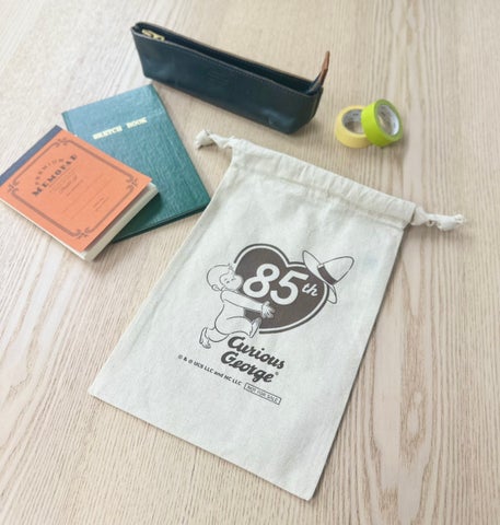 「おさるのジョージ」公式ECショップおよびポップアップショップ「おさるのジョージ うきうきマーケット」では、2026年1月16日(金)よりキャンペーンを開催します。税込3,300円以上購入したお客様には、周年記念アートをあしらった「オリジナル巾着」をプレゼントします。今後、85周年記念グッズも販売予定です。