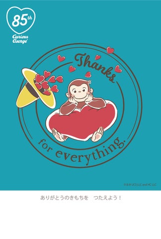 園施設を対象にした素材のダウンロードサービス「おさるのジョージ わくわくダウンロード広場」には、期間限定で85周年記念アートを使用したオリジナルデザインのポストカードが登場します。大切な人へ日頃の感謝やメッセージを送るのに活用できます。