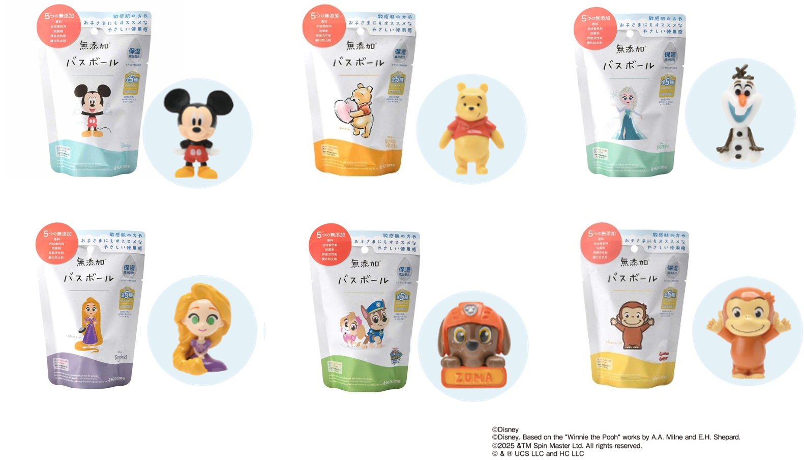 - デザイン: ミッキー&ミニー、くまのプーさん、アナと雪の女王、塔の上のラプンツェル、パウ・パトロール、おさるのジョージ
