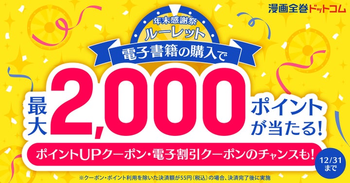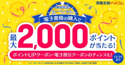 漫画全巻ドットコム年末感謝祭!最大2000円分ポイントGETのルーレット開催!
