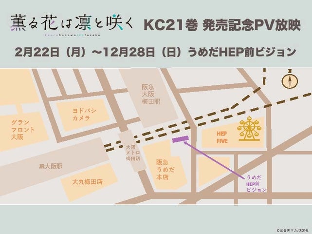 2025年12月22日(月)から12月28日(日)までの1週間、東京の新宿ユニカビジョンと大阪のうめだHEP前ビジョンにて、『薫る花は凛と咲く』の作品PVを放映します。