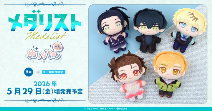 TVアニメ『メダリスト』より、優しくあたたかみのある、てのひらサイズのぬいぐるみシリーズ「ぬいパル」が全5種で登場します。2026年5月29日頃発売予定、価格は各1,980円(税込)です。詳細や購入方法を詳しく紹介するのでぜひ参考にしてください。
