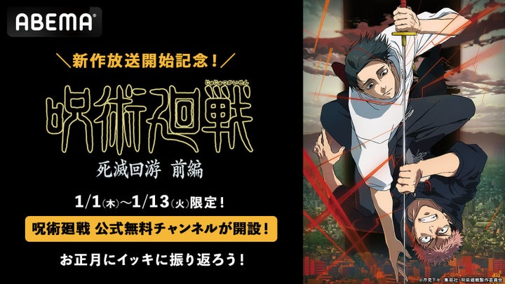 ABEMAは、2026年1月より放送が開始されるTVアニメ『呪術廻戦』死滅回遊 前編を記念し、期間限定で公式無料チャンネルを開設しました。2026年1月1日より13日間連続で、TVシリーズ全47話と『劇場版 呪術廻戦 0』を無料一挙放送します。