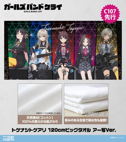 井芹仁菜、河原木桃香、安和すばる、海老塚智、ルパ) 各4,620円(税込) トゲナシトゲアリ 120cmビッグタオル アー写Ver. 5,500円(税込) |