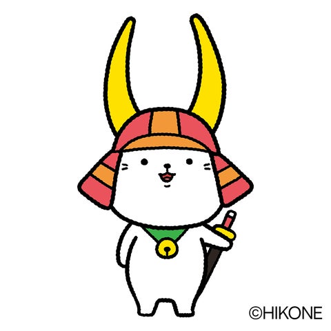 「ひこにゃん」は、彦根藩井伊家二代当主である井伊直孝公をお寺の門前で手招きして雷雨から救ったと伝えられる”招き猫”と、井伊軍団のシンボルとも言える赤備えの兜を合体させて生まれたキャラクターです。愛称の「ひこにゃん」は、全国よりお寄せいただいた1167点のなかから決定しました。巷ではひそかに「モチ」という愛称もあります。