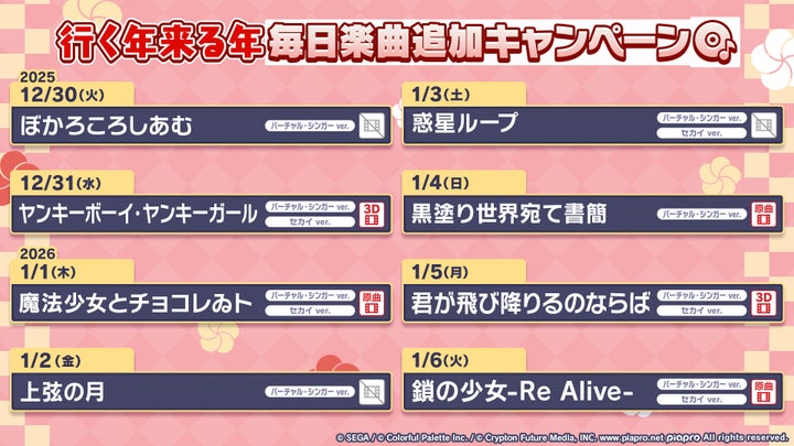 - 行く年来る年毎日楽曲追加キャンペーン