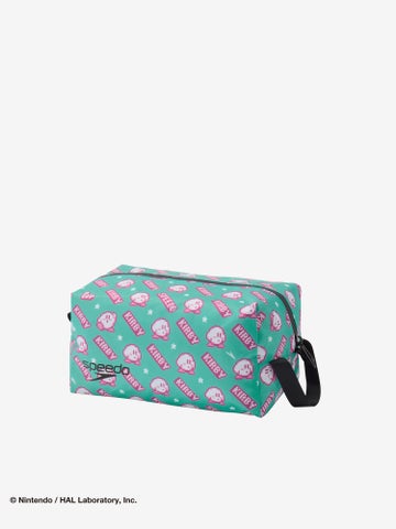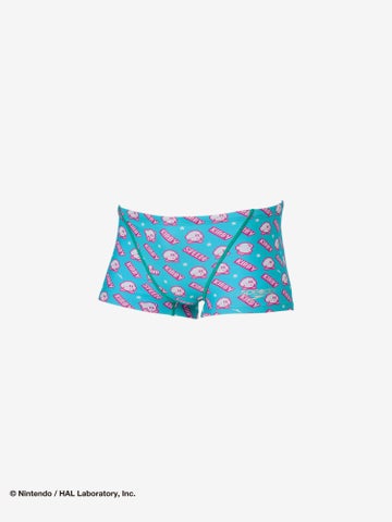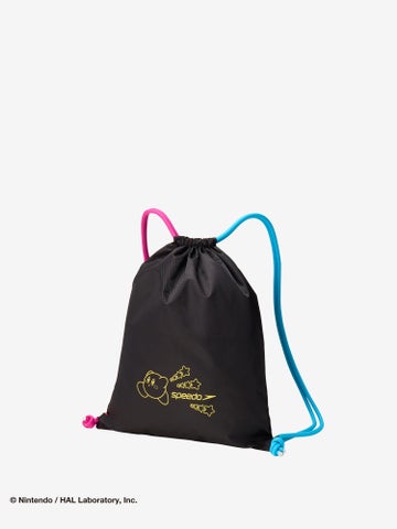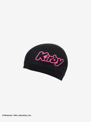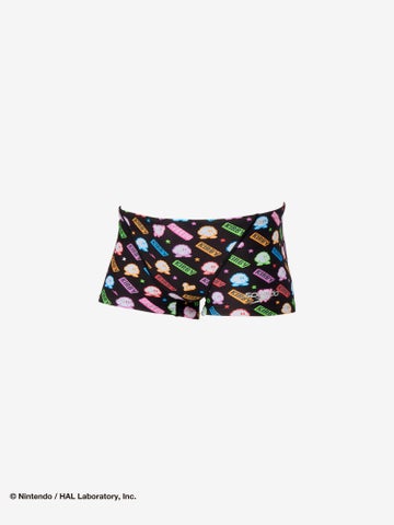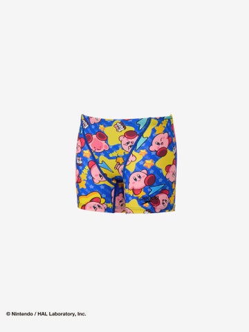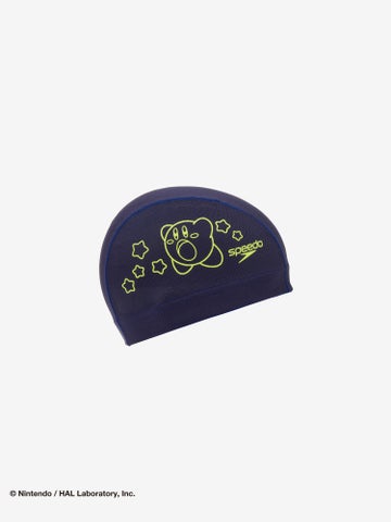 カービィとスター、そしてSpeedoのブーンマークを散りばめた、水中でも映えるカラフルでハッピーなグラフィックです。
