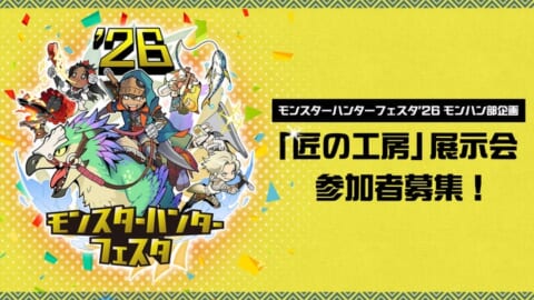 「モンスターハンターフェスタ’26」会場内で開催するモンハンオンリー創作展示会「匠の工房」では、出展クリエイターを募集しています。特設エリアで作品をハンター仲間に届けるチャンスです。