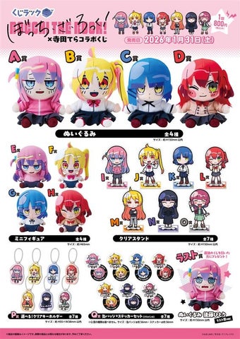 アニメ『ぼっち・ざ・ろっく!』のくじラックで、寺田てらさん描き下ろしイラストのオリジナルグッズや、後藤ひとりのラスト賞ぬいぐるみを手に入れる機会をお見逃しなく。最新情報や取扱店舗の詳細は、公式サイトで確認してください。