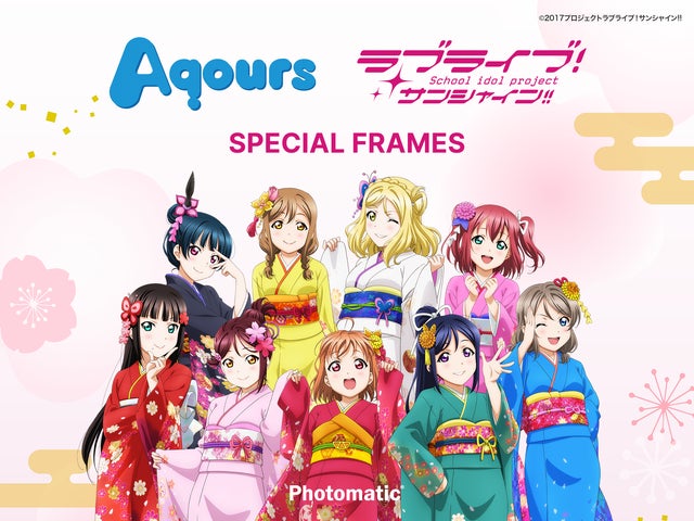 今回のコラボレーションでは、Aqoursメンバーの華やかな振袖姿がデザインされた特別なフレームが全5種登場します。