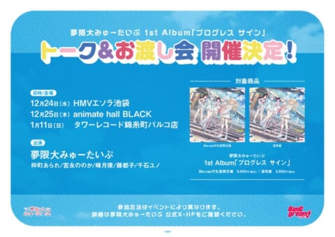 夢限大みゅーたいぷ 1st Album「プログレス サイン」のさらなる詳細や、各イベントの最新情報は公式サイトで確認できます。