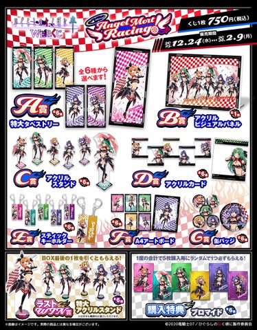 今回のWEBくじ『Angel Mort Racing!!』は、エンジェルモートをイメージした「レースクイーン」をテーマに、キャラクターデザインの渡辺明夫先生による全6キャラクターの描き下ろしイラストが特徴です。