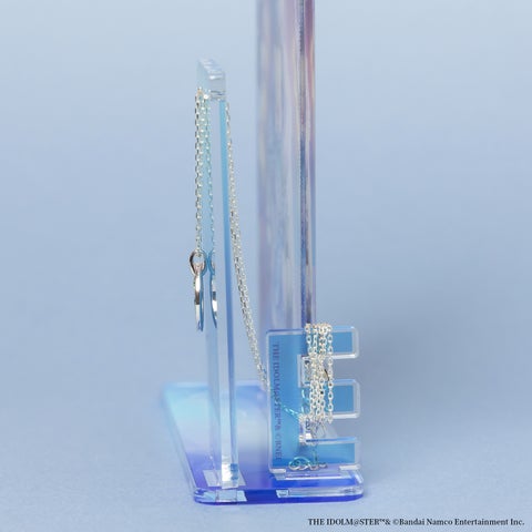 ネックレスをご購入いただいたお客様全員に、鷹城恭二のイラストを使用した【アクリルネックレススタンド】をプレゼントします。鷹城恭二と輝くネックレスを一緒に飾れる、ここでしか手に入らない特別なノベルティです。
