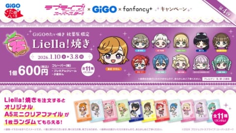 GiGOグループのお店限定景品、マストバイキャンペーン、コラボカフェ、fanfancy+オリジナルグッズの販売、コラボたい焼き「Liella!焼き」の販売、リポストキャンペーン |