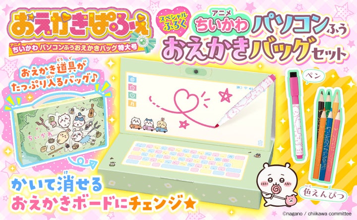 株式会社KADOKAWAは、人気キャラクターちいかわデザインの「パソコンふうおえかきバッグセット」が付録のムック『おえかきぱふぇ アニメちいかわ パソコンふうおえかきバッグ特大号』を2025年12月22日に発売しました。