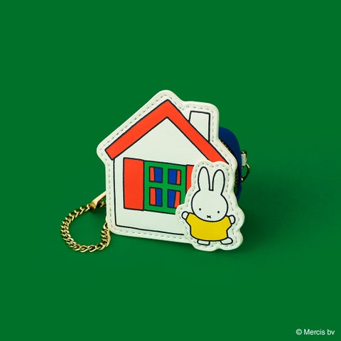 ミッフィーのおうちをモチーフにしたポーチは、ブルーナブルーの収納部分にちょっとした小物を入れるのに適したサイズ感です。バッグに付けられるチェーンも付属し、実用性も兼ね備えています。